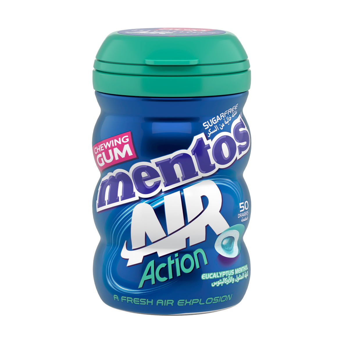 Indulge in Eucalyptus Freshness Mentos Air Action Menthol Flavored Sugar Free Gum 50P in each Jar